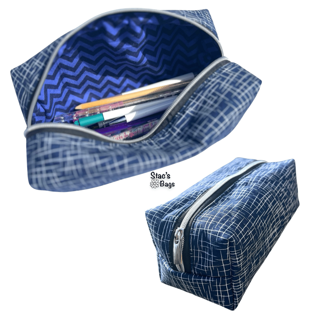 This is a very basic lined, boxy pouch and perfect for beginners or a quick win. During the video tutorials we go over interfacing and stabilisers and why we use them and all the different steps needed to create this simple but fun bag. We also go over one technique for creating boxed corners - created during construction rather than cut at the start.