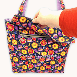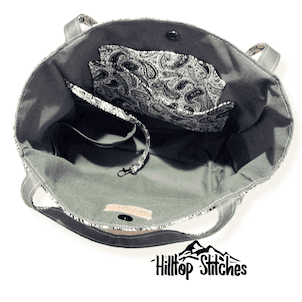 The outer side pockets are great for water bottles or an umbrella. Please note that due to how this is cut out you will want to use non-directional fabric – definitely for the lining. However for the outer fabric, you can flip the side pockets and have the lining on the outside which stops this issue.